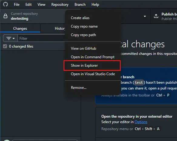 - In GitHub Desktop, right-click on the repository name in the left sidebar